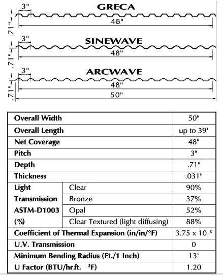 Standard Corrugations PolyCarbonate ( Lexan )