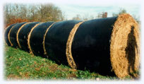 • As an alternative to barn storage, protecting round bale hay is to use plastic wrap in modified round balers.